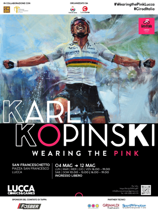 In particolare saranno due le attività capaci di attirare l’attenzione degli appassionati di ciclismo, ma anche del grande pubblico e dei cittadini. Lucca Comics & Games omaggerà la corsa a tappe con la mostra “Karl Kopinski: Wearing the Pink” e con 12 giganti installazioni artistiche.